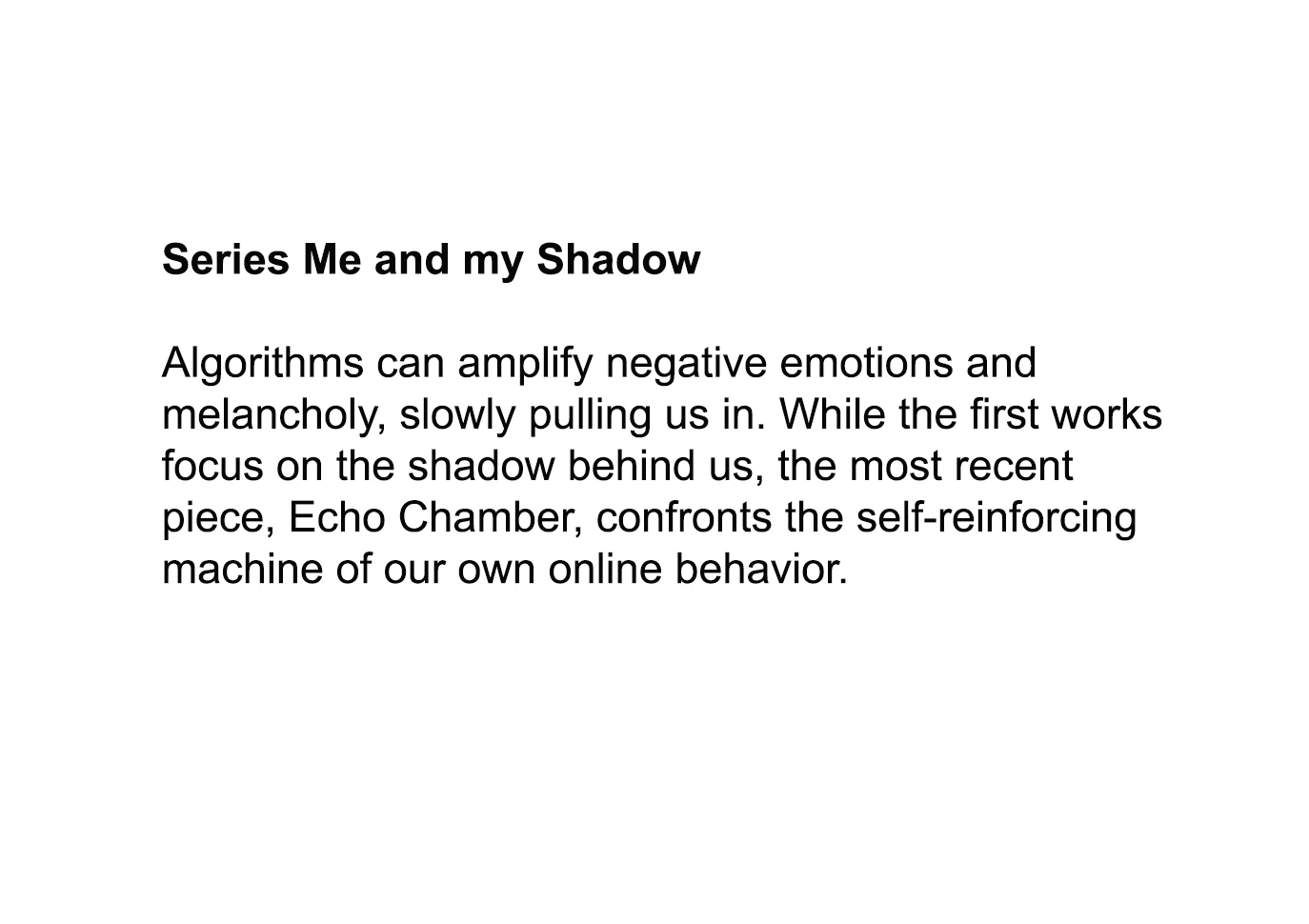 Studio view series ‘Me and my Shadow’