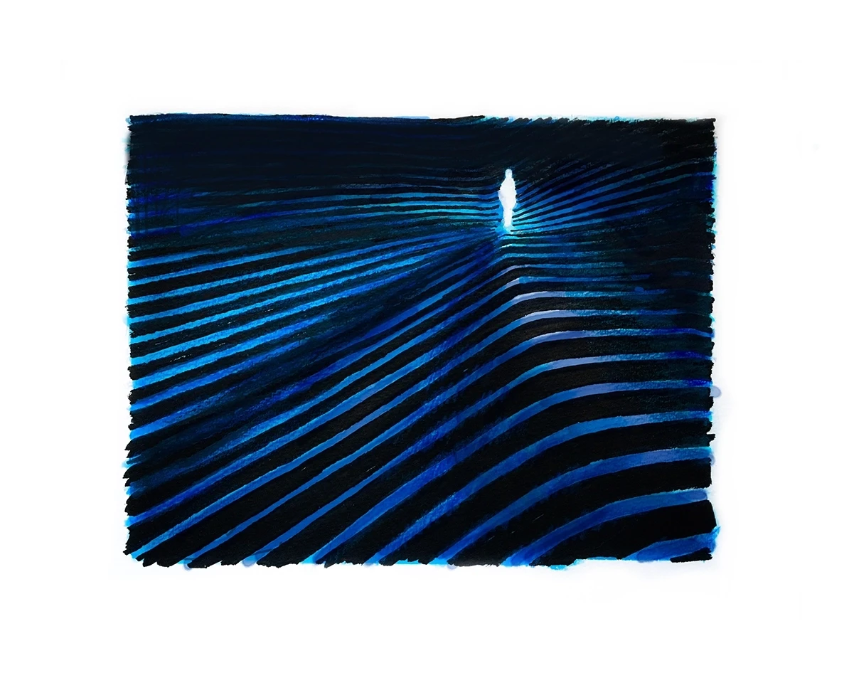 Preparatory drawing for ‘Echo Chamber’, ink on paper, 26 x 31,5 cm, 2019