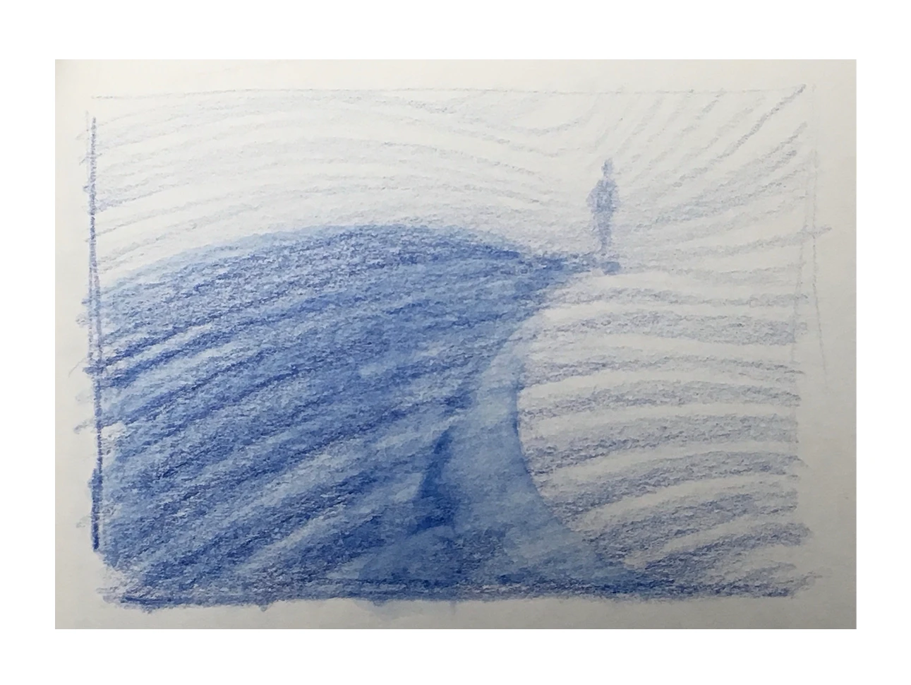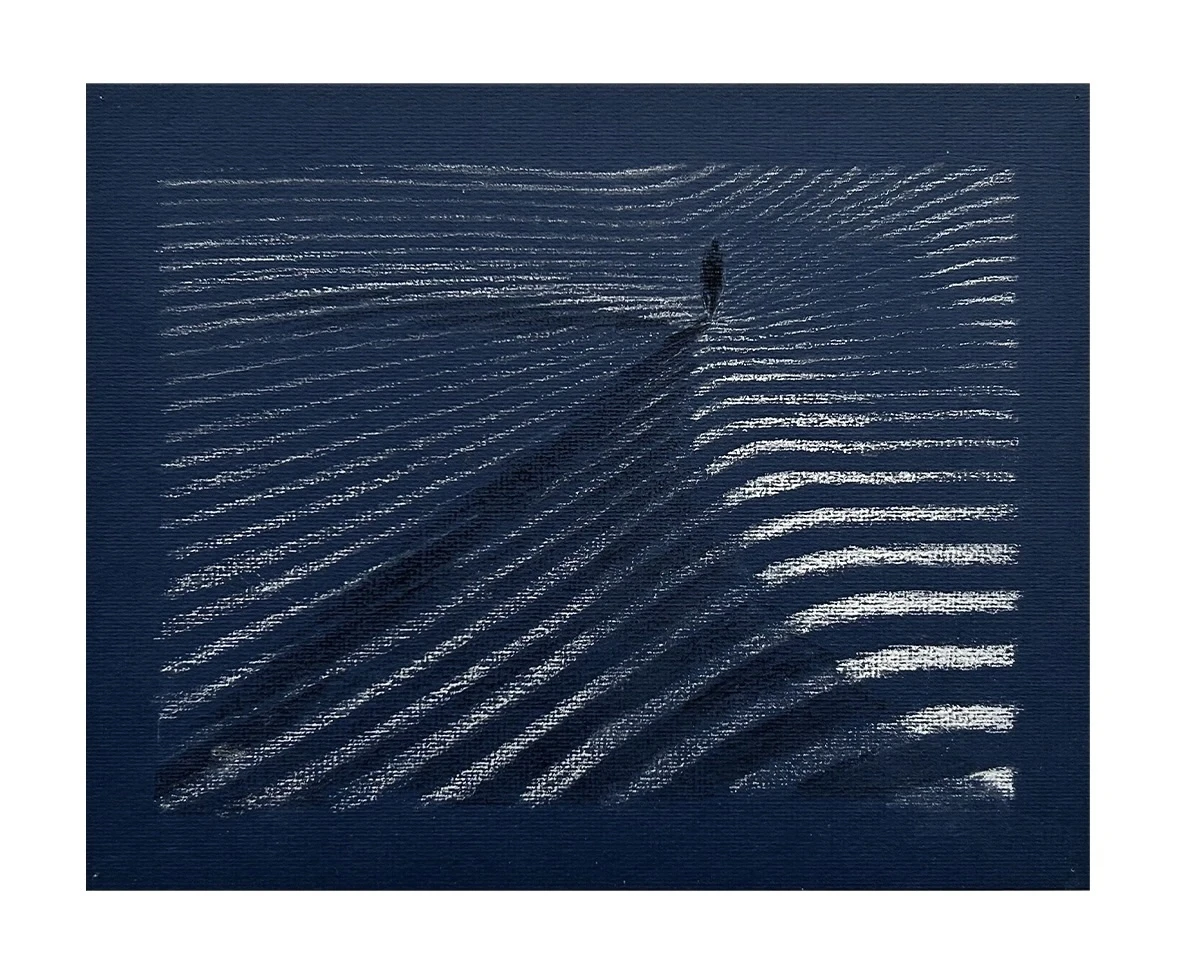 Preparatory study for ‘Me and my Shadow’, 21 x 26,3 cm, pastel on blue paper, 2018